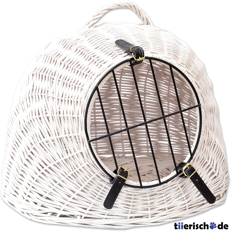 Diese weisse Tierhöhle kann als stationärer Platz verwendet werden – ist aber auch der perfekte Begleiter auf Reisen oder für den Transport zum Tierarzt, aufwendig in Handarbeit hergestellt. Jeder Korb ist ein Unikat. Gitter und