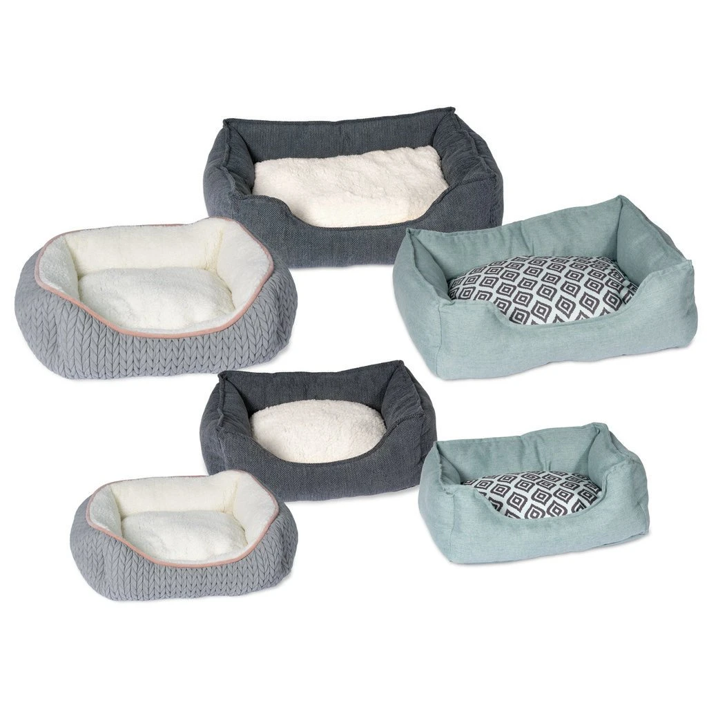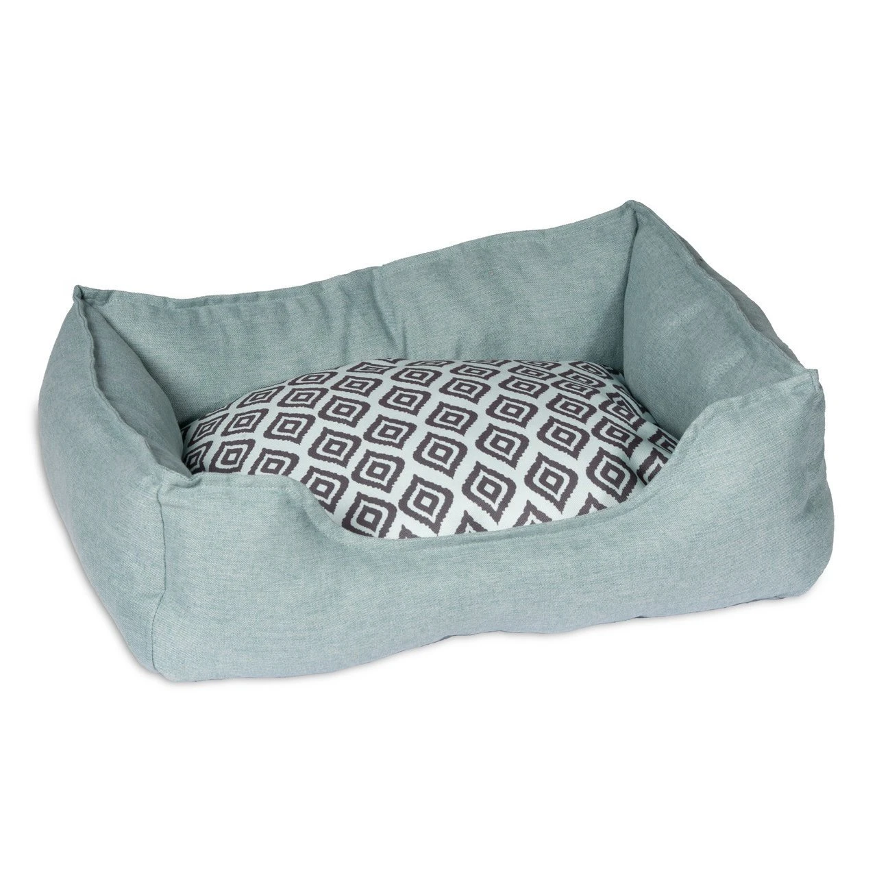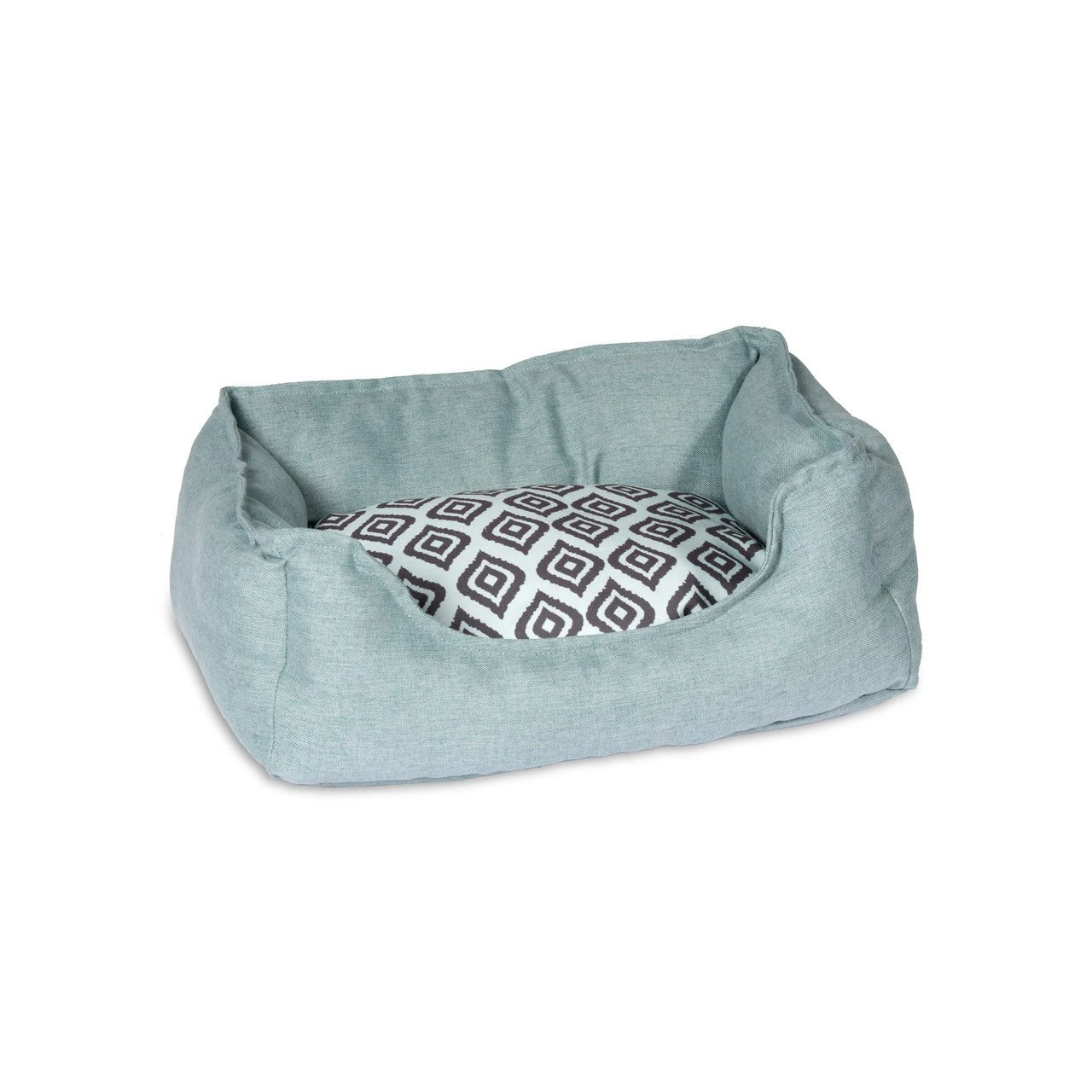 Das rechteckige Liegebett von Karlie aus weichem Stoff bietet Katzen, aber auch kleinen Hunden einen angenehmen Ruheplatz und hohen Liegekomfort. Die hohen Ränder sind ideal geeignet, um sich an sie zu kuscheln oder um den Kopf abzulegen. Ein abgesenkter Einstieg erleichtert den Zugang. Die Betten sind in zwei Größen und drei Designs erhältlich.
