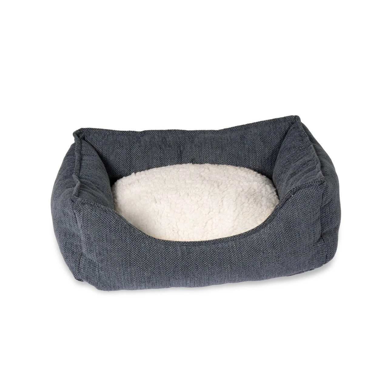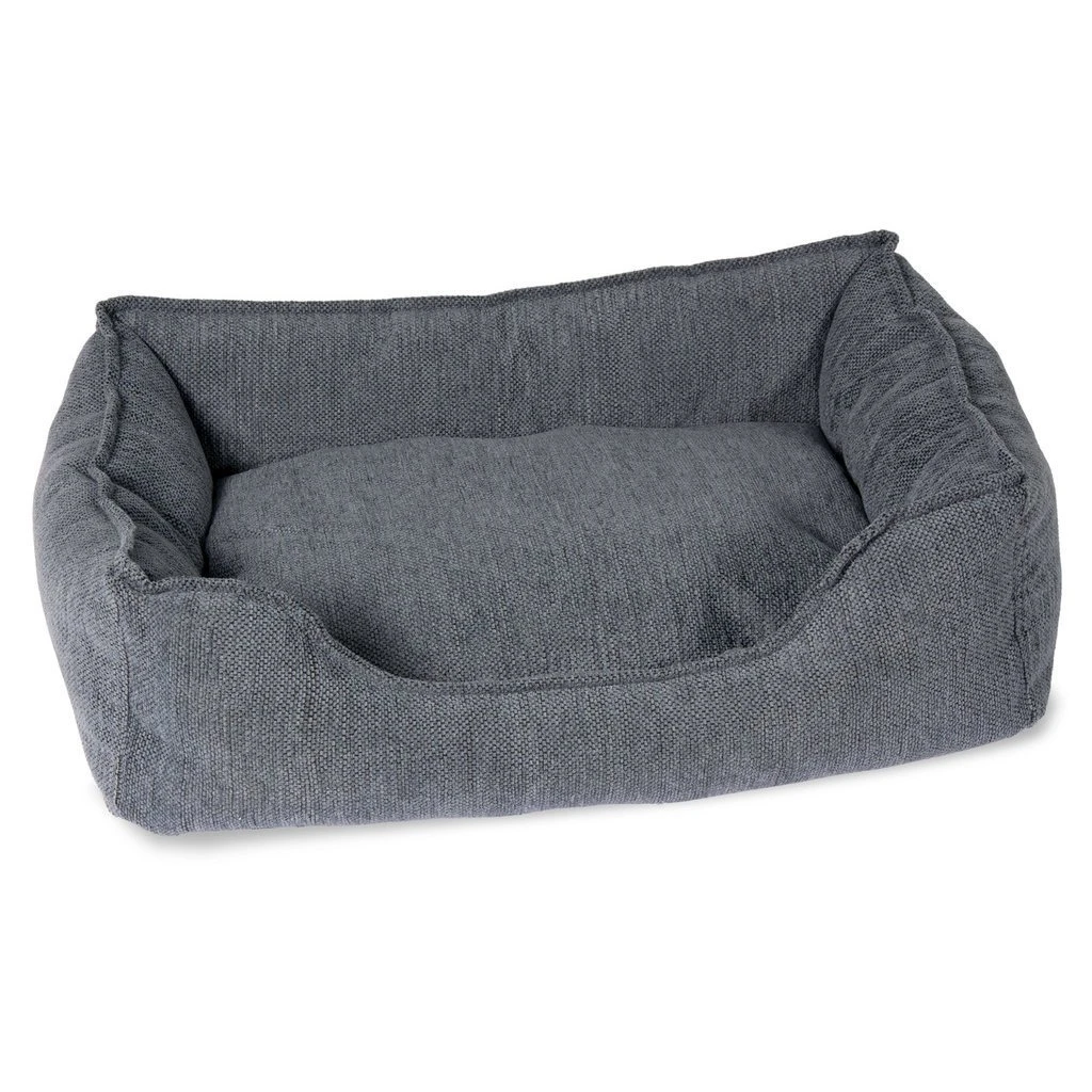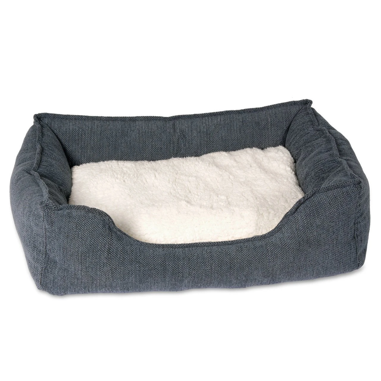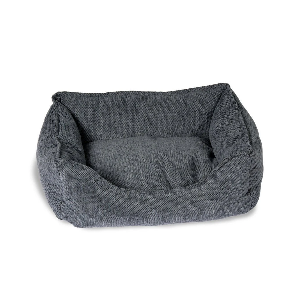 Das rechteckige Liegebett von Karlie aus weichem Stoff bietet Katzen, aber auch kleinen Hunden einen angenehmen Ruheplatz und hohen Liegekomfort. Die hohen Ränder sind ideal geeignet, um sich an sie zu kuscheln oder um den Kopf abzulegen. Ein abgesenkter Einstieg erleichtert den Zugang. Die Betten sind in zwei Größen und drei Designs erhältlich.
