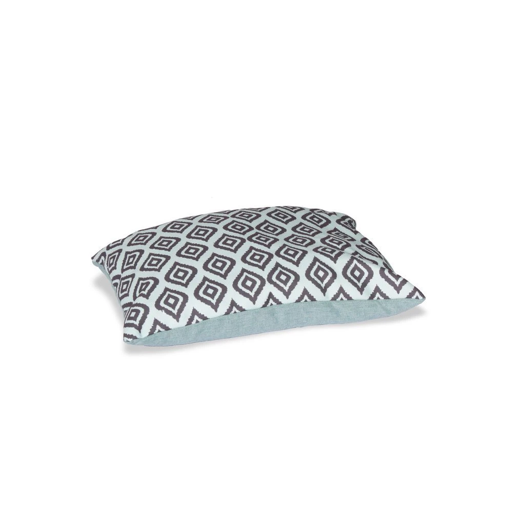 - Das mintfarbene Bett kann dank eines Wendekissens in seiner Optik verändert werden. Durch eine unifarbene und einer gemusterte Seite kann der Platz nach Belieben gestaltet werden.