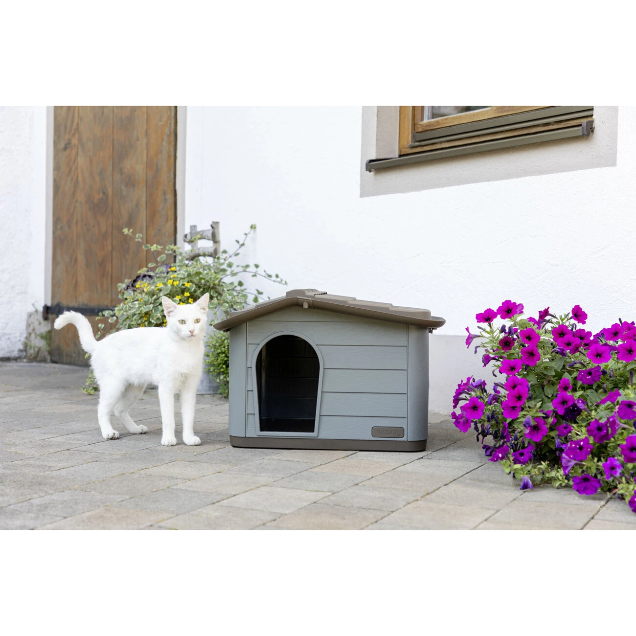 Das Katzenhaus Paola wird hergestellt aus 100 % Post-Consumer recyceltem Kunststoff. Es begeistert durch seine mediterrane Optik und kann Indoor sowie auch Outdoor verwendet werden. Geeignet ist es für 1-2 Katzen, kleine Hunde oder andere Kleintiere. Das Haus ist komplett zerlegbar und die Einzelteile sind Dank ihrer glatten Oberflächen sehr leicht zu reinigen.