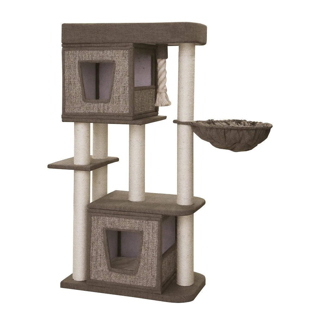 Der stabile Kratzbaum für Katzen verfügt über zwei Höhlen zum Verstecken und besteht aus mehreren Etagen mit vielen Liegeplätzen und einer gemütlichen Liegemulde. Die stabile Stämme sind mit robustem Sisal umwickelt und bieten jede Menge Möglichkeiten zur Krallenpflege.