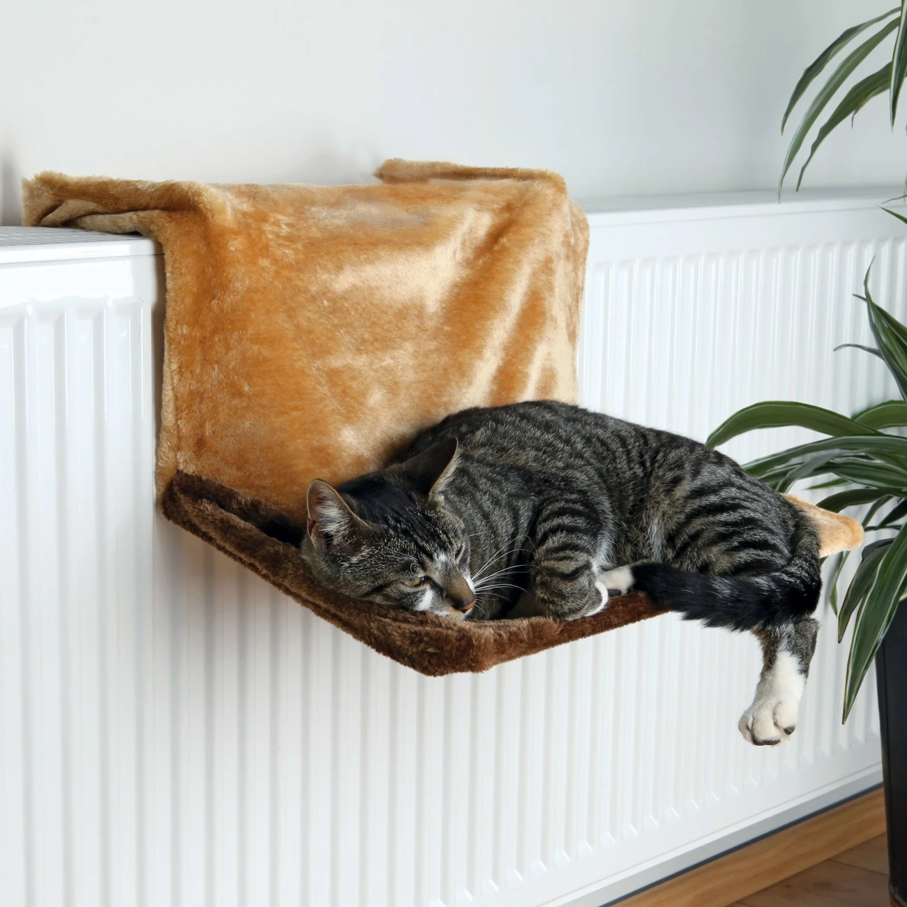 Katzen mögen es warm und kuschelig. Mit dieser Liegemulde für Heizkörper schaffen Sie Ihrer Katze einen neuen Lieblingsplatz. Die Liegemulde lässt sich mit Hilfe der verstellbaren Bügel schnell und einfach an alle Heizkörper befestigen. Durch das Metallgestell ist die Liegemulde besonders stabil und auch für schwere Katzen geeignet. Der Reißverschluss gibt dem Bezug mehr Halt und verhindert das Verrutschen.