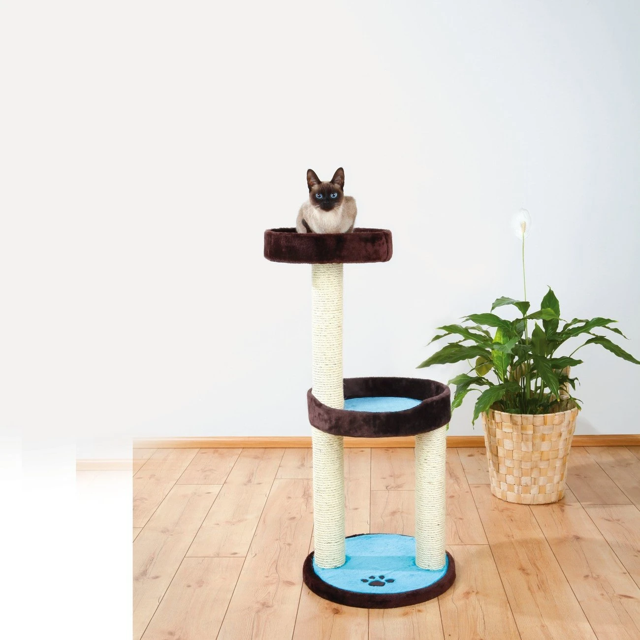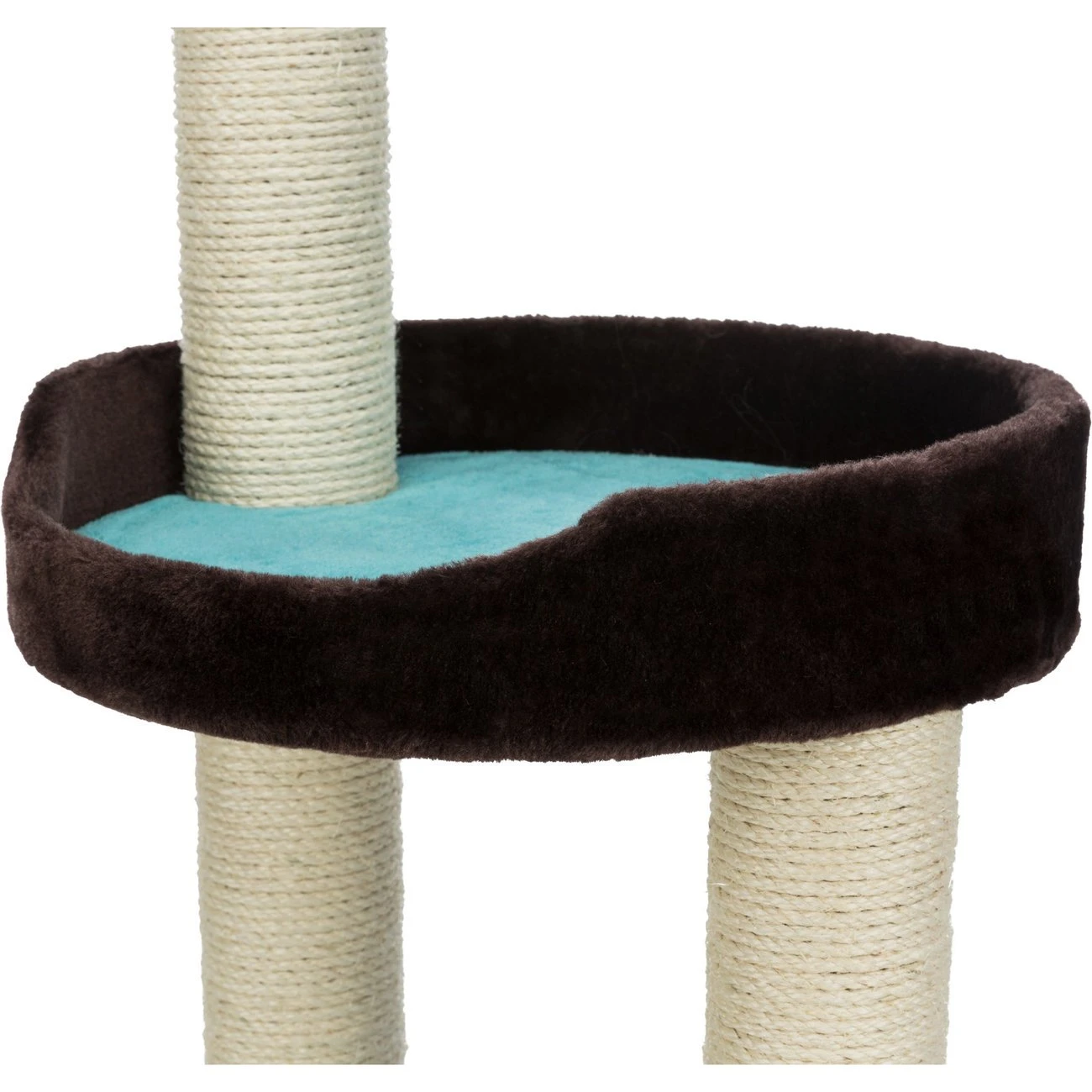 Der Kratzbaum Lugo von TRIXIE ist in braun/türkis erhältlich und insgesamt 103 cm hoch.