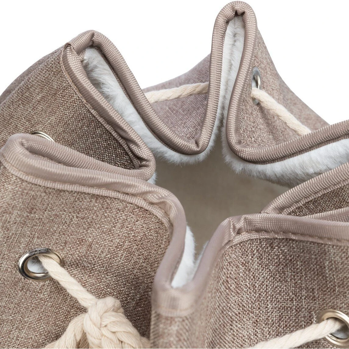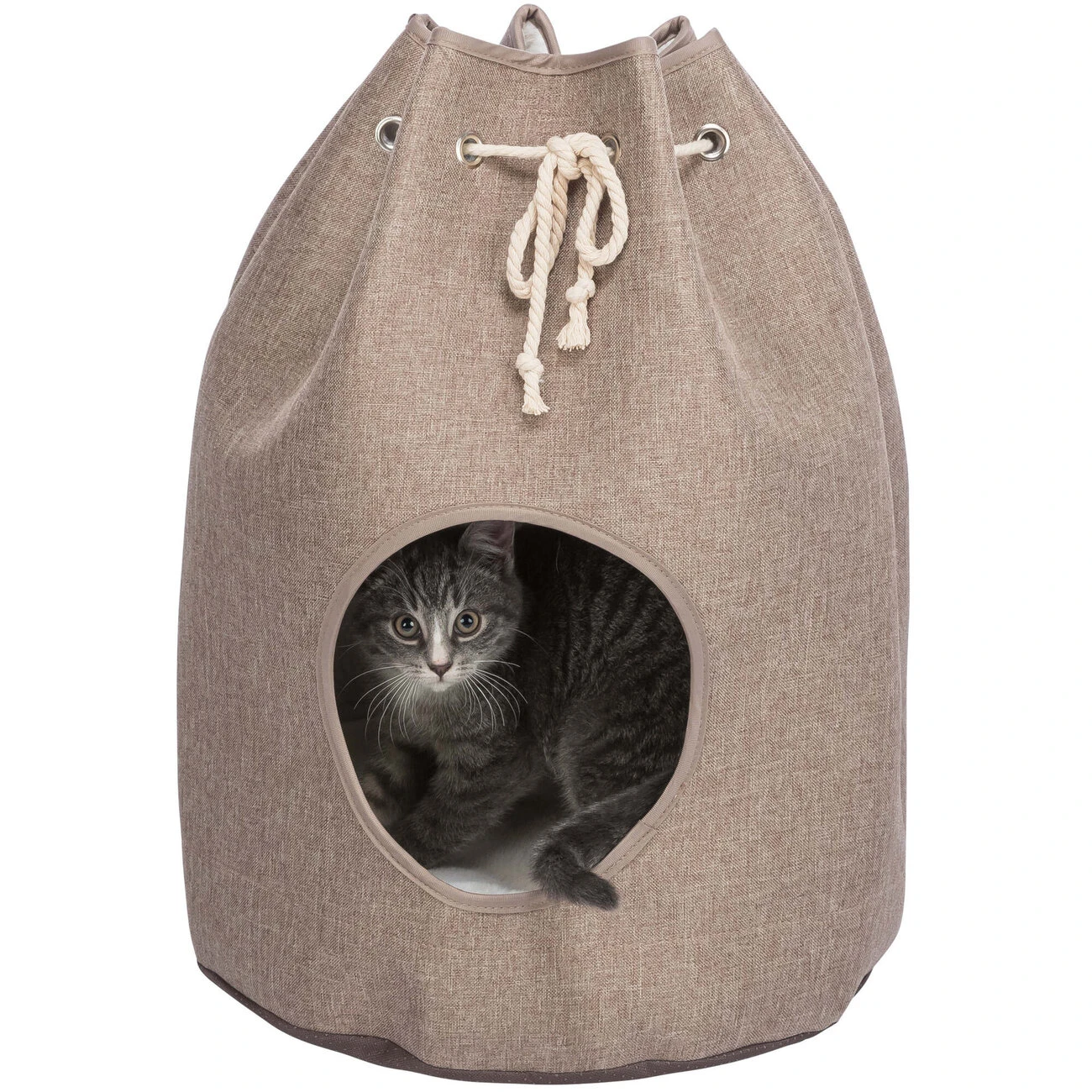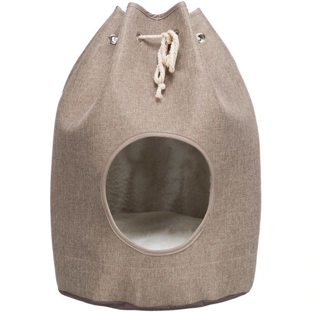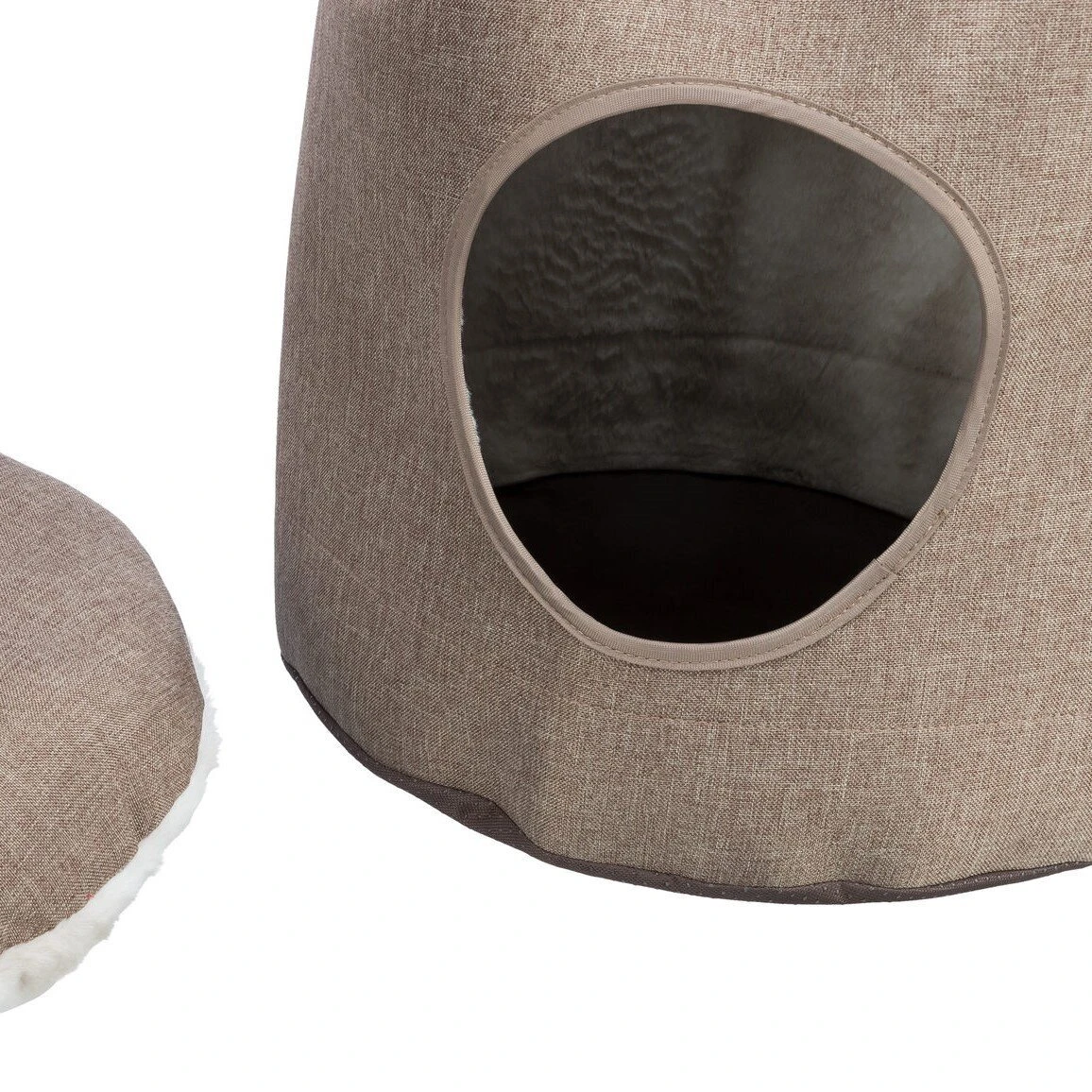 Die Katzenhöhle Nelli von Trixie besticht mit seinem einzigartigen Design. Ihre runde Form ist dank der Außenhülle aus Webstoff sehr stabil, während die Innenseite aufgrund des Kissens kuschlig weich ist. Das Kissen ist aufgrund der Füllung aus Polyestervlies flexibel und den Bezug des Kissens kann man zum Waschen einfach abziehen.